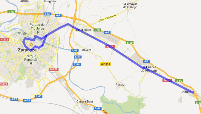Alfajarín – Avenida Cataluña – Plaza del Pilar – Hospital Provincial – Plaza España – Zaragoza centro